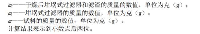 m2——干燥后坩堝式過濾器和濾渣的質(zhì)量的數(shù)值,單位為克(g);