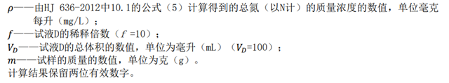試樣中總氮含量以質(zhì)量分?jǐn)?shù)w3計(jì),按式(6)計(jì)算: