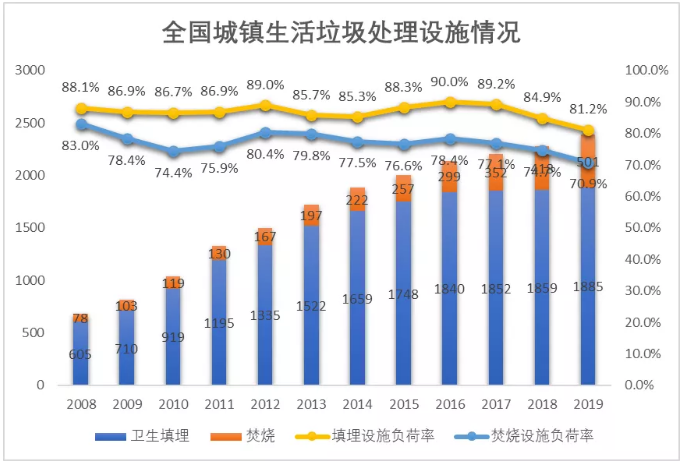 由于具有無害化、減量化和資源化等特點(diǎn),垃圾焚燒發(fā)展迅速,垃圾焚燒發(fā)電廠數(shù)量以及垃圾處理量占比都呈持續(xù)上升趨勢,行業(yè)發(fā)展前景廣闊。已投入運(yùn)營的生活垃圾焚燒廠數(shù)量則由2008年的78座增長至2019年的501座,平均每座生活垃圾焚燒廠的處理能力由683噸/日增長至1041噸/日,體現(xiàn)出我國生活垃圾焚燒處理設(shè)施逐漸大型化、成熟化、穩(wěn)定化的基本特征。而焚燒廠的運(yùn)營負(fù)荷率始終保持在70~80%的較健康水平。部分生活垃圾焚燒廠未能達(dá)到滿負(fù)荷運(yùn)營,其中原因較為復(fù)雜,主要可分為以下兩類:入廠垃圾量達(dá)不到設(shè)計(jì)處理能力、處理設(shè)施穩(wěn)定連續(xù)運(yùn)營能力不足。生活垃圾焚燒廠運(yùn)營社會資本應(yīng)注意其中風(fēng)險。