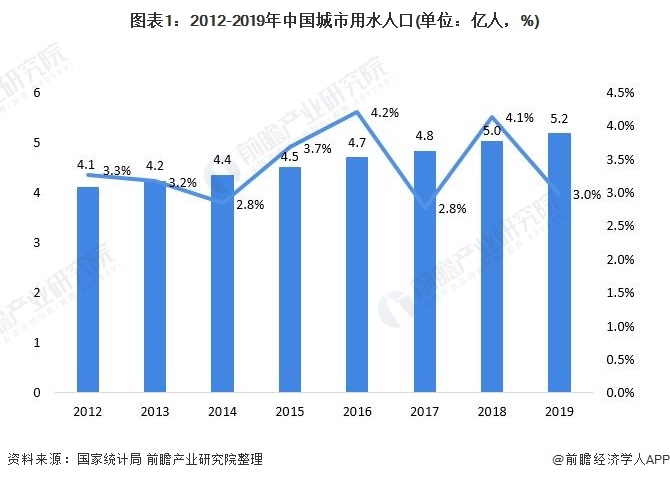 改革開(kāi)放以來(lái),隨著中國(guó)城市化進(jìn)程的加快,我國(guó)城市用水人口總量將持續(xù)上升,水務(wù)行業(yè)的重要性日益凸顯。據(jù)國(guó)家統(tǒng)計(jì)局?jǐn)?shù)據(jù)顯示,自2012年起我國(guó)城市用水人口穩(wěn)健增加,截至2019年底,我國(guó)城市用水人口達(dá)5.18億人,同比增長(zhǎng)2.98%。