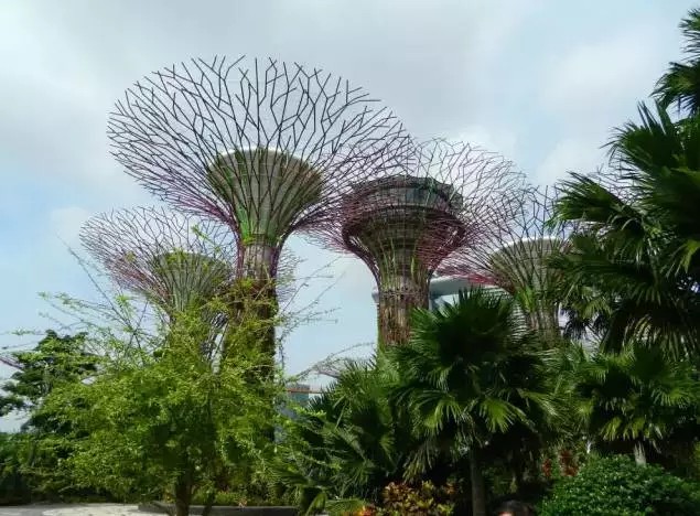 超級樹公園建設在新加坡濱海灣地區(qū),和著名的金沙賭場隔路相望。該花園由Grant Associates景觀事務所設計,公園地表18棵Super tree其實是塔狀垂直結構的樹形花園,高25到50米不等,頂部散開的直徑大約30米可吸收雨水,生成太陽能。其中11棵采用了環(huán)境可持續(xù)性的材料,還安裝了太陽能光伏電池介質,利用太陽能來為"樹干"發(fā)電,其余的樹木則成為焚燒廠排氣裝置的一部分。"超級樹"的高度從25米到50米不等,最高的"超級樹"頂部設有酒吧。
