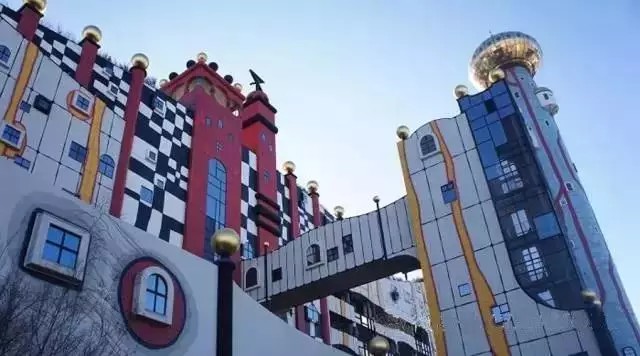 景觀設計:這座建筑物是奧地利有名的藝術家、建筑設計師百水先生的杰作。工程從1988年至1992年進行了四年建成。居民遠遠就可以看見一個高高聳立的大煙囪,中部有一個碩大的金色球體,在藍天下格外醒目。這金色的圓形球體會讓人聯想到某明珠電視塔的旋轉餐廳,其實不然。這就是垃圾焚燒廠的控制室。色彩斑斕而充滿童趣的外墻立面,讓人感覺就像是一座童話城堡。 外墻面上隨意涂抹的卡通畫,有的是各種色彩的水果,有的是各種性能的用具,煞是可愛。
