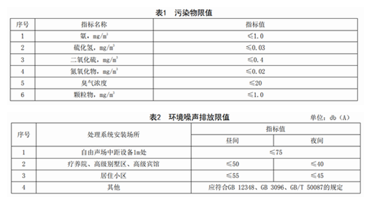 8.5 應(yīng)采取隔聲、吸聲、降噪等措施。處理系統(tǒng)產(chǎn)生的環(huán)境噪聲應(yīng)符合GB 12348、GB 3096、GB/T 50087的規(guī)定。具體指標(biāo)見表2。