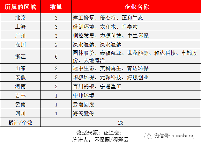 從所屬的地域劃分看,今年掛牌上市的28家企業(yè)中,有11家是北上廣深的企業(yè),數(shù)量與去年持平。這很好理解,北上廣深是一線大都市,政府財(cái)力雄厚,對(duì)環(huán)保傾斜力度也大,所以孕育上市企業(yè)的機(jī)會(huì)也就更多。