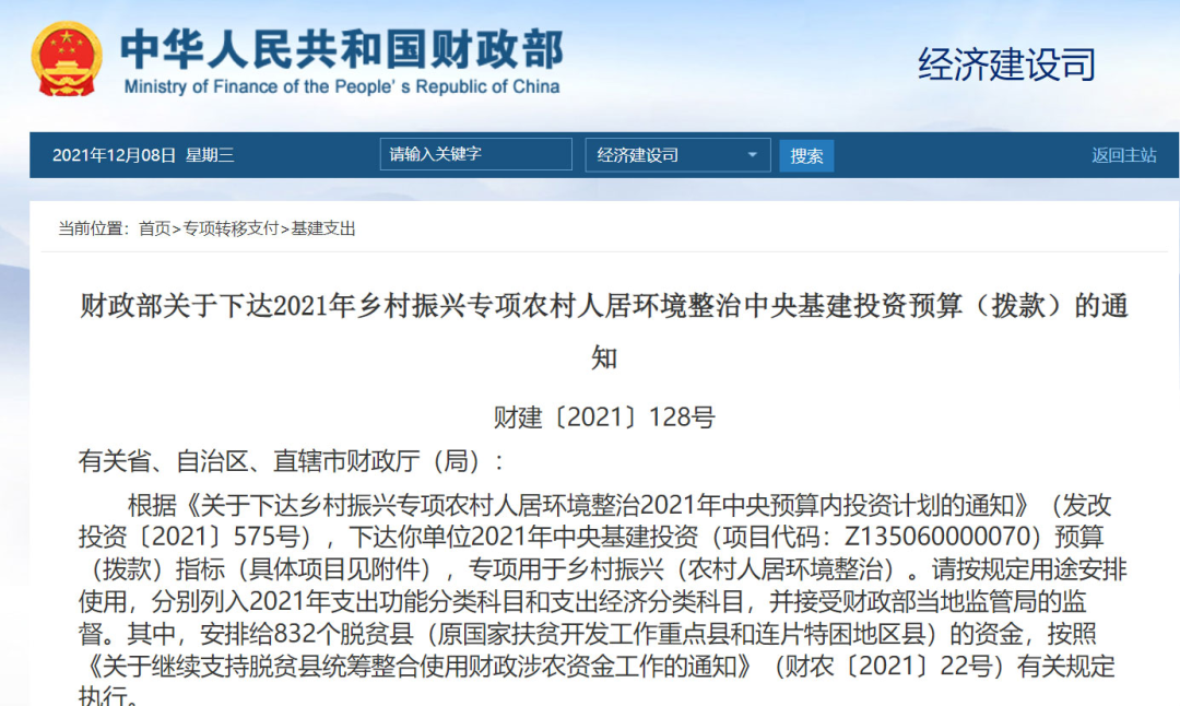 也就是說(shuō),農(nóng)村人居環(huán)境整治提升,主要的資金來(lái)源還是要靠地方。中央這邊,會(huì)安排一定的中央預(yù)算內(nèi)投資,給予獎(jiǎng)補(bǔ)。查了一下,今年5月12日,財(cái)政部就曾經(jīng)下達(dá)“2021年鄉(xiāng)村振興專(zhuān)項(xiàng)農(nóng)村人居環(huán)境整治中央基建投資預(yù)算(撥款)”,總額為29.6億元.去年8月,財(cái)政部也曾經(jīng)下達(dá)2020年的“農(nóng)村人居環(huán)境整治專(zhuān)項(xiàng)中央基建投資預(yù)算(撥款)”,當(dāng)時(shí)的總額是29.756億元。從這兩年的情況看,每年全國(guó)大概30億吧,這是中央拿出來(lái)的錢(qián)。地方各級(jí)政府要保障農(nóng)村人居環(huán)境整治基礎(chǔ)設(shè)施建設(shè)和運(yùn)行資金,統(tǒng)籌安排土地出讓收入用于改善農(nóng)村人居環(huán)境,鼓勵(lì)各地通過(guò)發(fā)行地方政府債券等方式用于符合條件的農(nóng)村人居環(huán)境建設(shè)項(xiàng)目。看得出來(lái),地方政府的投入,主要來(lái)源是兩個(gè):一是土地出讓金,二是發(fā)行地方債。