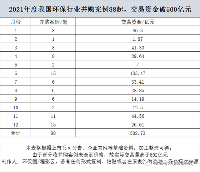 “多、大、全、深” 2021年環(huán)保行業(yè)并購規(guī)模突破500億元,創(chuàng)歷年之最!