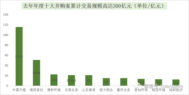 尤其值得一提的是,去年年度TOP 10并購案累計(jì)交易規(guī)模高達(dá)300億元,排名前三的,除了業(yè)內(nèi)熟知買來又賣的中國天楹出售Urbaser之外,還有兩樁鮮為人知的收購大案:通用首創(chuàng)50.84億元轉(zhuǎn)讓40%深水集團(tuán)股權(quán),以及清新環(huán)境作價(jià)22.51億元競(jìng)買國潤水務(wù)。