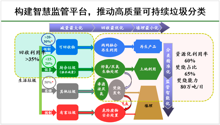 三是,構(gòu)建智慧監(jiān)管平臺(tái),推動(dòng)高質(zhì)量可持續(xù)垃圾分類。垃圾分類靠過(guò)去粗放管理方式不可能實(shí)現(xiàn)全覆蓋,必須要借助于信息化手段。要達(dá)成“十四五”規(guī)劃中提到的生活垃圾資源化利用率60%的目標(biāo),生活垃圾就要做到減量最大化、回收最優(yōu)化、填埋最小化,而這些依賴于分類精準(zhǔn)化,說(shuō)到底要靠監(jiān)管智能化來(lái)實(shí)現(xiàn)。