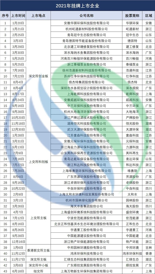 原標(biāo)題:擬募資近200億!2021年43家新增環(huán)保上市公司來襲!