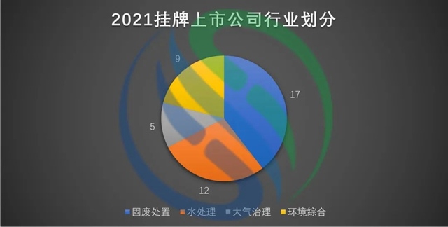 根據(jù)中國水網(wǎng)統(tǒng)計數(shù)據(jù)來看,2021年新增涉環(huán)保業(yè)務(wù)上市公司中,有17家從事固廢處置行業(yè),有12家從事水處理行業(yè),有9家從事環(huán)境綜合領(lǐng)域,有5家從事大氣治理行業(yè)。