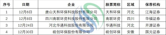 值得注意的是,北京證券交易所于2021年11月15日開市,對于環(huán)境產(chǎn)業(yè)而言,這無疑是一項重大利好。據(jù)中國水網(wǎng)統(tǒng)計,開市首日,共有4家企業(yè)成功登陸北交所,分別是北京中航泰達環(huán)??萍脊煞萦邢薰?、新安潔環(huán)境衛(wèi)生股份有限公司、華維設(shè)計集團股份有限公司與北京恒合信業(yè)技術(shù)股份有限公司。另外,目前4家環(huán)保企業(yè)已經(jīng)進入北交所上市輔導(dǎo)期: