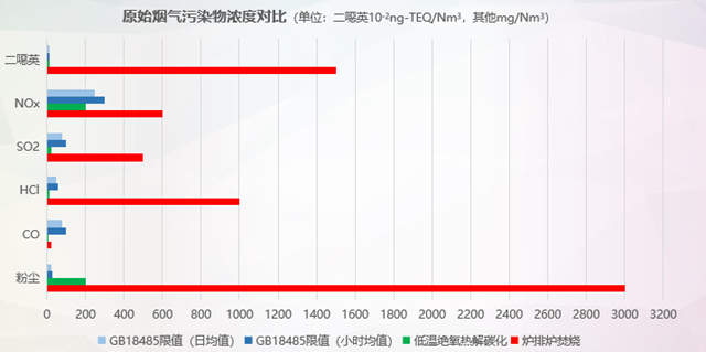 羅宇煊用云南水務(wù)在昆明周邊的兩個200噸級的垃圾處理廠的真實數(shù)據(jù),對低溫絕氧熱解碳化技術(shù)和爐排焚燒技術(shù)的主體布局、爐腔溫度、廠區(qū)工藝、煙氣處理和原始煙氣污染物濃度作了進(jìn)一步的對比。