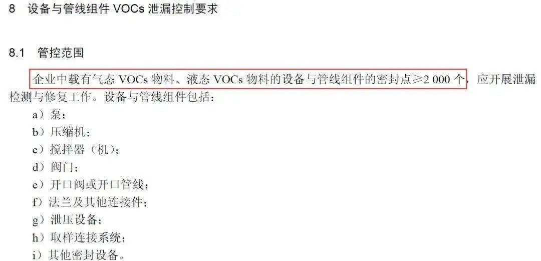 即對(duì)于企業(yè)中載有氣態(tài)VOCs物料、液態(tài)VOCs物料的設(shè)備與管線組件密封點(diǎn)小于2000個(gè)的,不強(qiáng)制開(kāi)展泄露檢測(cè)與修復(fù)工作。