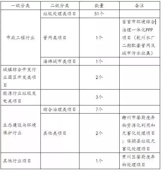 財政部或發(fā)改委目前公布的PPP項目行業(yè)類別中,尚沒有將餐廚垃圾處理作為一項獨立行業(yè)予以認(rèn)定,因此,可查詢到的與餐廚垃圾處理相關(guān)的PPP項目,多為一級行業(yè)下所包含的子行業(yè)、子項目,而在一些諸如市政相關(guān)或城鎮(zhèn)綜合開發(fā)等行業(yè)中,上述情況尤為突出。
