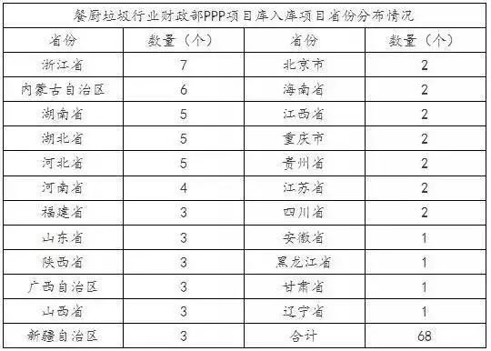 根據(jù)目前最新數(shù)據(jù),華信基業(yè)對餐廚垃圾處理行業(yè)財政部PPP入庫項目作出簡要梳理分析。