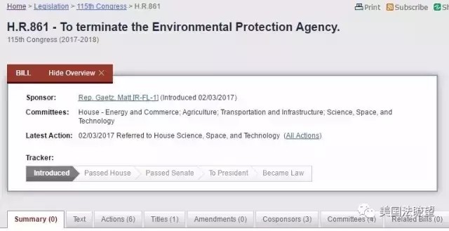 2017-02-14 中國(guó)環(huán)境新聞2017年2月3日,美國(guó)國(guó)會(huì)公布了一份來自國(guó)會(huì)參議員的提案,名稱為《撤銷環(huán)境保護(hù)局》(To terminate the Environmental Protection Agency),提議在2018年底撤銷國(guó)家環(huán)境保護(hù)局。What ? 在環(huán)境議題已經(jīng)在全世界廣受關(guān)注的時(shí)候,居然會(huì)有人提議撤銷環(huán)保局!美國(guó)國(guó)會(huì)網(wǎng)站公布的“關(guān)于撤銷環(huán)境保護(hù)局議案”這份“撤銷環(huán)境保護(hù)局”的議案由來自佛羅里達(dá)州第一選區(qū)的參議員馬特?蓋茨(Matt Gaetz)牽頭提出,該議案同時(shí)有另外三名共和黨議員聯(lián)名附屬簽名提出。