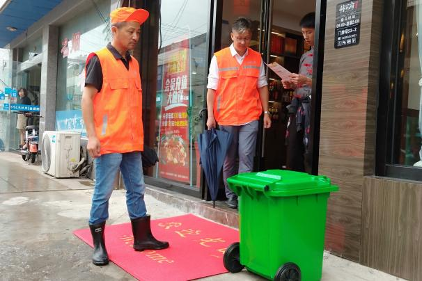 在夏港街道,港城環(huán)境以江南路為試點路段,廣泛開展上門宣傳;向試點路段的65家餐飲商戶逐一發(fā)放餐廚垃圾專用桶,并引導商戶愛護環(huán)境衛(wèi)生,自覺將垃圾分類投入到垃圾桶內(nèi)。此舉將從源頭有效推動餐廚垃圾集中收集。