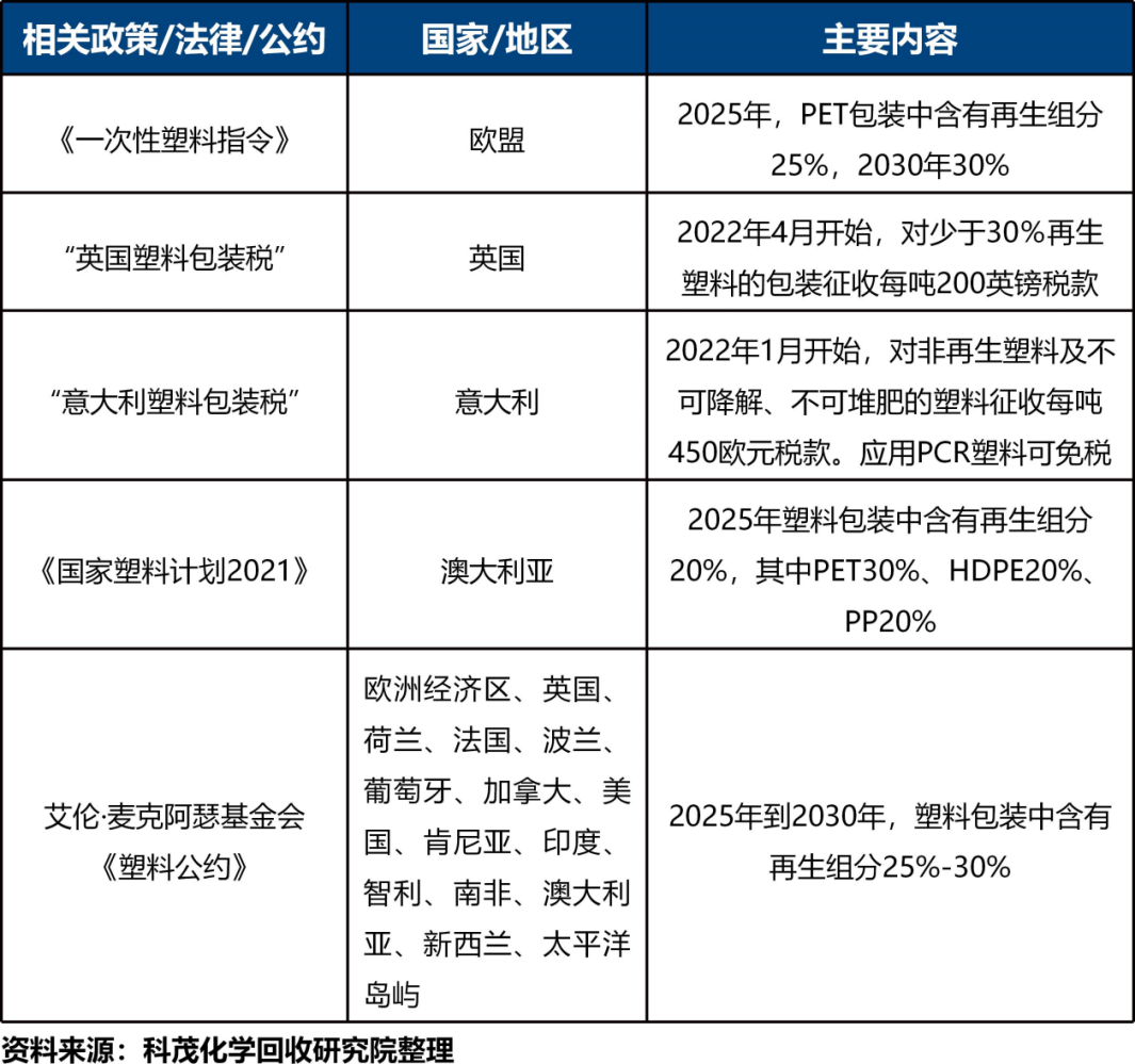 表4 鼓勵(lì)使用PCR塑料的政策