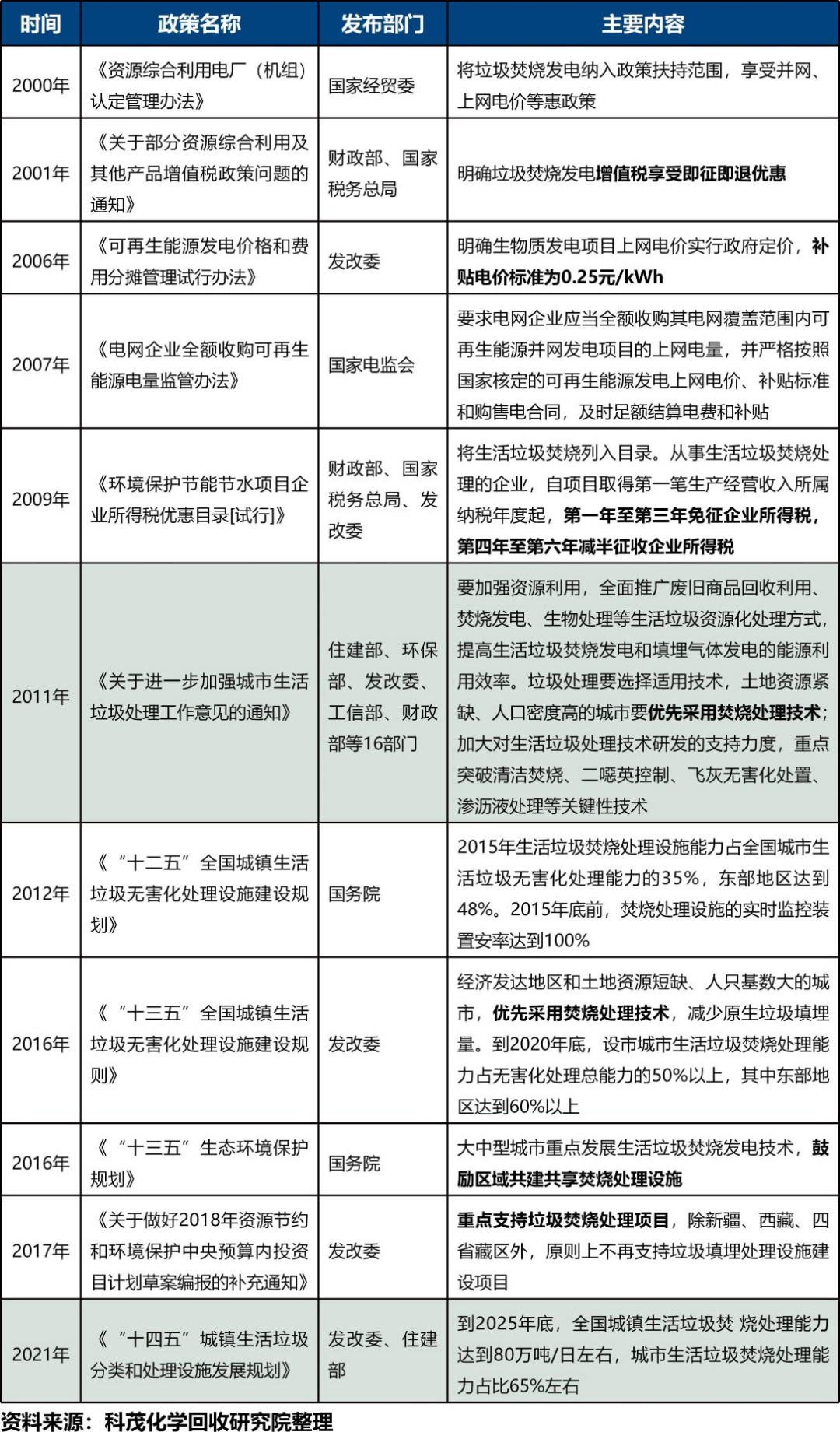 廢塑料化學(xué)回收剛剛進(jìn)入政策制定早期,作為與垃圾焚燒、餐廚垃圾處理比較類似的垃圾終端處理技術(shù),其政策脈絡(luò)可供參考。