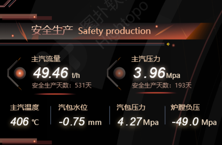 2D 面板實(shí)時(shí)更新余熱鍋爐蒸汽壓力,蒸汽溫度、給水溫度、鍋爐排污率、蒸汽蒸發(fā)量、本體阻力。