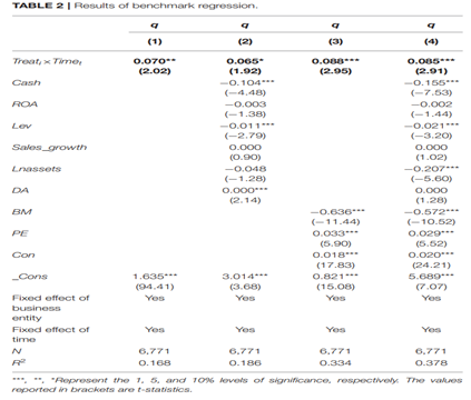 那么,這一試點(diǎn)政策對(duì)微觀綠色企業(yè)有什么樣的影響?是否真正在長(zhǎng)期提升了綠色企業(yè)的價(jià)值?為回答這一問(wèn)題,本文借助于中國(guó)開(kāi)展綠色金融試點(diǎn)的準(zhǔn)自然實(shí)驗(yàn)場(chǎng)景,使用上市公司中綠色企業(yè)的數(shù)據(jù),檢驗(yàn)綠色金融試點(diǎn)對(duì)于綠色企業(yè)價(jià)值的影響。