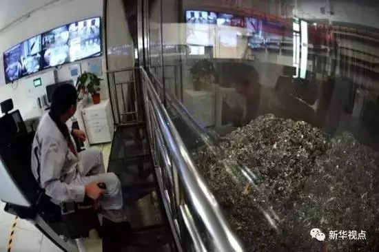 朝陽清潔焚燒中心,工人在抓取垃圾焚燒。新華社記者 鞠煥宗 攝