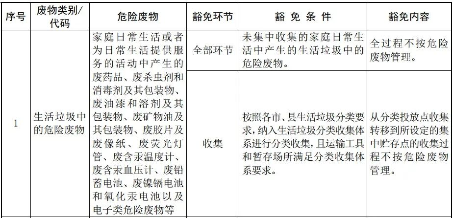 由于危險廢物具有諸多危害,危險廢物收集、運(yùn)輸、處置、利用等全流程嚴(yán)格按照經(jīng)營許可證制度管理。同時也規(guī)定,在滿足一定的條件下,危廢的收集、運(yùn)輸、處置等環(huán)節(jié)可以豁免,按照豁免內(nèi)容的規(guī)定實(shí)行豁免管理。例如生活源的危廢(廢電池、水銀溫度計等),如果未集中收集的,則全部環(huán)節(jié)不按危廢管理,如果已按照地方要求納入分類收集體系,且運(yùn)輸工具和暫存場所滿足分類收集體系要求,則從分類投放點(diǎn)收集、轉(zhuǎn)移到集中貯存點(diǎn)的收集過程不按危廢管理。