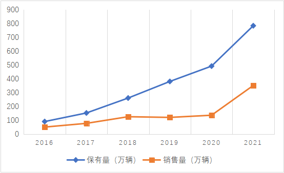 圖 3 2016年至2021年我國新能源車輛保(銷)量水平