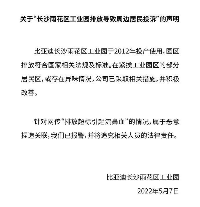 環(huán)保意識(shí)淡薄是國(guó)內(nèi)企業(yè)的通病,別看一天天“綠色發(fā)展”的口號(hào)喊得震天響,但落在動(dòng)作上卻是另一回事。擺在眼前的事實(shí)就是,比亞迪這樣的新能源企業(yè)照樣沒(méi)有環(huán)保理念,甚至在問(wèn)題出現(xiàn)后有極強(qiáng)的蒙混過(guò)關(guān)的心態(tài)。此次事件已經(jīng)不是比亞迪第一次因?yàn)榄h(huán)境問(wèn)題觸犯眾怒了,可以說(shuō)是2011年比亞迪深圳工廠故事的重演。彼時(shí),比亞迪曾計(jì)劃斥資82億元,在深圳市龍崗區(qū)寶龍工業(yè)區(qū)興建一座新能源材料基地,號(hào)稱“世界最大的新能源電池廠”,項(xiàng)目用地距離周邊居民區(qū)僅百余米,一路之隔的鄰居們對(duì)污染隱患強(qiáng)烈抗?fàn)帯?/span>當(dāng)年10月,該計(jì)劃被叫停,11月,該規(guī)劃被變更。變更規(guī)劃后,被移除的生產(chǎn)環(huán)節(jié)搬往了其他地區(qū),其中包括長(zhǎng)沙。2019年,長(zhǎng)沙市生態(tài)環(huán)境局官網(wǎng)上公布的《長(zhǎng)沙市省級(jí)環(huán)保督察反饋問(wèn)題第四十七項(xiàng)整改情況公示》顯示,長(zhǎng)沙比亞迪因噴涂車間生產(chǎn)廢氣排放的污染物影響附近居民生活被作為重點(diǎn)被投訴企業(yè),被納入重點(diǎn)監(jiān)管對(duì)象。2021年5月8日,在湖南省生態(tài)環(huán)境廳官網(wǎng)上,一份群眾信訪舉報(bào)轉(zhuǎn)辦和邊督邊改公開(kāi)情況一覽表顯示,對(duì)于長(zhǎng)沙市雨花區(qū)比亞迪制造廠涂裝車間油漆味嚴(yán)重、影響居民生活問(wèn)題,經(jīng)雨花經(jīng)開(kāi)區(qū)管委會(huì)、同升街道、區(qū)生態(tài)環(huán)境分局、區(qū)生態(tài)環(huán)境執(zhí)法大隊(duì)聯(lián)合調(diào)查核實(shí),情況基本屬實(shí)。可見(jiàn)伴隨著比亞迪業(yè)績(jī)的快速增長(zhǎng),環(huán)境污染問(wèn)題是一直存在的。此次在長(zhǎng)沙比亞迪雨花區(qū)工廠停工整頓之前,勢(shì)頭正勁的比亞迪一定不會(huì)想到火爆的生意會(huì)因?yàn)榄h(huán)境問(wèn)題停下產(chǎn)線。而這種“想不到”是企業(yè)對(duì)待污染問(wèn)題的一種普遍和慣性心理。這個(gè)事件能夠反映出一個(gè)事實(shí),一些產(chǎn)生污染的大企業(yè)對(duì)環(huán)保的認(rèn)知還不夠。從比亞迪《關(guān)于“長(zhǎng)沙雨花區(qū)工業(yè)園排放導(dǎo)致周邊居民投訴”的聲明》中可以看到明顯的推卸責(zé)任的意愿和強(qiáng)勢(shì)的威懾。比亞迪的聲明,有一種大企業(yè)、優(yōu)秀企業(yè)的傲慢和草率,這是國(guó)內(nèi)企業(yè)面對(duì)環(huán)境污染這樣的社會(huì)問(wèn)題的普遍態(tài)度。一直以來(lái)這些企業(yè)國(guó)內(nèi)的生存和發(fā)展機(jī)制中是缺少這一環(huán)的。環(huán)保是比亞迪品牌升華過(guò)程中必須要過(guò)的一關(guān),畢竟一家優(yōu)秀的新能源產(chǎn)品公司長(zhǎng)期存在污染問(wèn)題,故事無(wú)論如何是講不通的。當(dāng)然,辯證地看,這次事件對(duì)比亞迪也是好事,工廠能夠在訂單旺盛之際停工整頓,足見(jiàn)高層清醒的認(rèn)知的果敢的魄力。以比亞迪能夠在國(guó)內(nèi)出類拔萃的這一部分品質(zhì)和能力,是一定能夠借此機(jī)會(huì)決好自身的污染問(wèn)題并真正踐行綠色發(fā)展理念的。