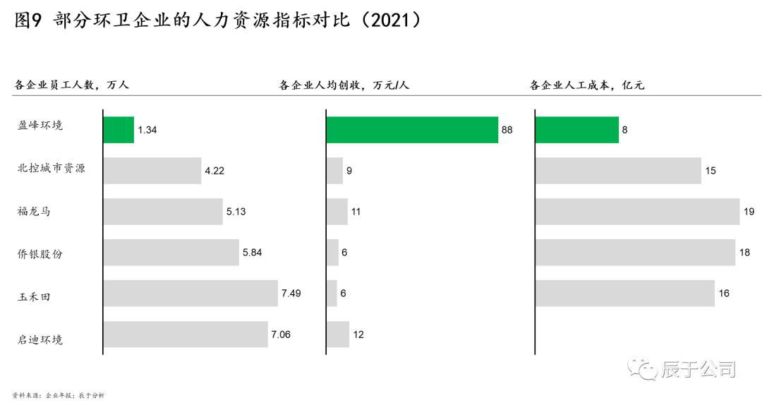 五是內(nèi)部合作方面近年來,美的不斷推動盈峰環(huán)境與下轄其他業(yè)務(wù)板塊建立深度合作,例如,盈峰環(huán)境2021年開始與美的物業(yè)展開多方位合作,布局城市的綜合型、智慧化服務(wù)市場。具體舉措包括:一是合力加碼城市服務(wù)業(yè)務(wù),2021年1月,雙方簽訂戰(zhàn)略合作,將圍繞智慧城市運營服務(wù)等開展強強合作,依托各自在品牌行業(yè)產(chǎn)業(yè)優(yōu)勢,信息共享、互利雙贏;二是打造智慧清潔綜合服務(wù)項目,2021年6月,雙方合作的首個智慧清潔項目落地,該項目由盈峰環(huán)境提供智慧化環(huán)保裝備,美的物業(yè)提供業(yè)務(wù)資源支持與試點機會;三是共建盈美城市管家研究院,2021年8月,盈峰與美的物業(yè)共建盈美城市管家研究院,共同派駐科研人員、聘請行業(yè)研究專家、定期出具行業(yè)研究報告;四是美的物業(yè)還進駐了盈峰環(huán)??萍紙@,雙方以AI、5G+賦能傳統(tǒng)行業(yè),基于智慧環(huán)衛(wèi)與物業(yè)的雙向融合,積極探索實踐“城市管家” 新技術(shù)、新模式,助力數(shù)字化、智慧化、云聯(lián)化。