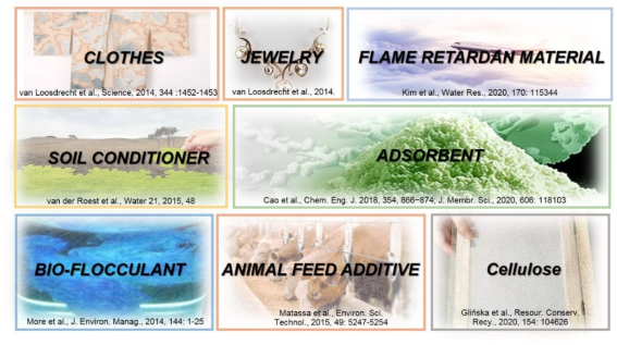 污水資源化是未來(lái)污水處理的發(fā)展方向,也是人類可持續(xù)發(fā)展的必然。自污水或污泥中提取的多糖、蛋白質(zhì)、腐殖質(zhì)、核酸、DNA、磷脂、糖醛酸和礦物質(zhì)等,可作為印染原料、首飾和服裝原料、阻燃材料、土壤調(diào)節(jié)劑、吸附劑、生物絮凝劑、飼料添加劑,應(yīng)用于水處理、農(nóng)業(yè)、園藝、造紙工業(yè)、醫(yī)療、建筑工業(yè)等領(lǐng)域,具有重大的回收價(jià)值。