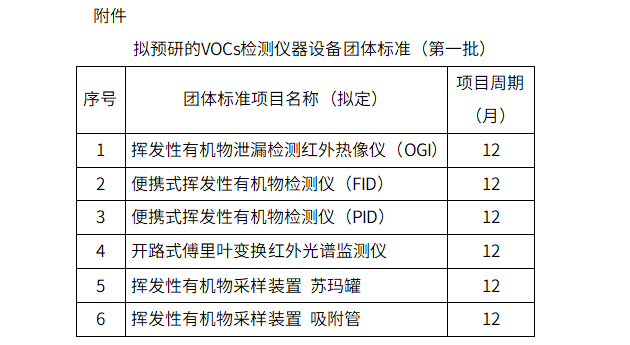 附件:擬預(yù)研的VOCs檢測儀器設(shè)備團體標準(第一批)