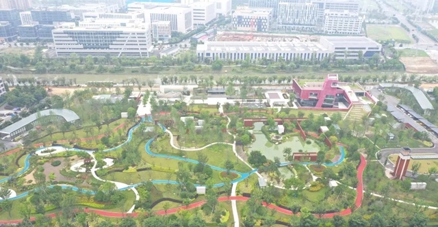 成都市雙流公興(中電子)再生水廠項(xiàng)目設(shè)計(jì)規(guī)模10萬(wàn)噸/日,采用地下式設(shè)計(jì),大大節(jié)約占地面積,地上是開放式生態(tài)綠地公園及科普教育中心,有效滿足城市界面與基礎(chǔ)設(shè)施環(huán)境高度融合,還社會(huì)以廣闊的自然空間。同時(shí),項(xiàng)目以新理念、高標(biāo)準(zhǔn)打造,在環(huán)境融合度、建設(shè)標(biāo)準(zhǔn)和功能延伸方面突破傳統(tǒng),賦予了城市基礎(chǔ)設(shè)施更大價(jià)值。