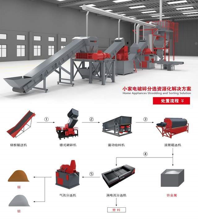 如何將固廢變身“城市礦藏”,恩派特對固廢處理提出具有普遍性、創(chuàng)新性、實操性的建議。恩派特小家電破碎分選方案軟硬件一體,采用了模塊化設(shè)計,從上料系統(tǒng)、破碎系統(tǒng)、磁選系統(tǒng),到分選系統(tǒng)和除塵系統(tǒng),處置流程相當(dāng)成熟,能輕松分離出銅、鐵、鋁以及塑料碎片,各類處置設(shè)備科學(xué)結(jié)合、合理布局,資源化利用率產(chǎn)出比高,其核心設(shè)備的可靠性、安全性也均有保障。