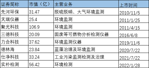 其中主要涉及環(huán)境監(jiān)測檢測業(yè)務(wù)的企業(yè)有8家,平均發(fā)行市盈率約為43.4,整體上高于固廢企業(yè)和水務(wù)企業(yè)。2019年之后上市企業(yè)4家,平均發(fā)行市盈率為26.3。
