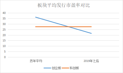 從兩個板塊對比看,科創(chuàng)板企業(yè)的平均發(fā)行市盈率約為27.5,創(chuàng)業(yè)板企業(yè)的的平均發(fā)行市盈率約為36.2,比科創(chuàng)板高35.2%??紤]到科創(chuàng)板企業(yè)都是2019年之后上市的,以2019年之后上市企業(yè)統(tǒng)計,則創(chuàng)業(yè)板企業(yè)的平均發(fā)行市盈率約為21.5,比科創(chuàng)板企業(yè)低了將近21%。