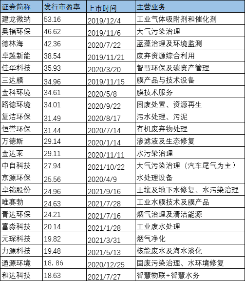 上周,E20水網(wǎng)固廢網(wǎng)發(fā)布了《93家創(chuàng)業(yè)板、科創(chuàng)板環(huán)保企業(yè)市值大對比》。今天再試著對比下與企業(yè)市值相關(guān)的發(fā)行市盈率。