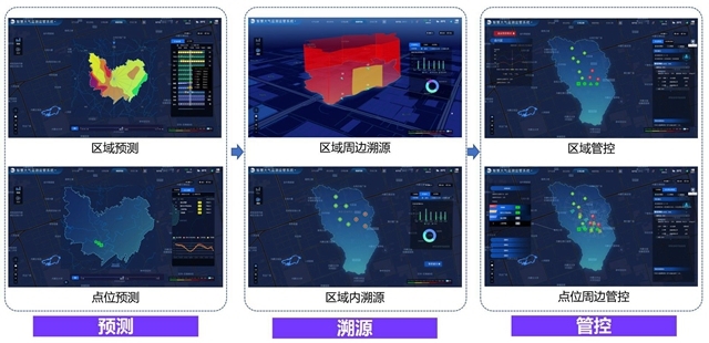 在談及詳細的管控治理時,馬婧向記者展示了具體的應用案例場景,“好的管控建議需要各類源產(chǎn)生單位配合執(zhí)行落實。比如,針對工業(yè)企業(yè),通過接入其工況用電數(shù)據(jù)以及末端監(jiān)測數(shù)據(jù),配合報警規(guī)則,實時關注企業(yè)是否嚴格執(zhí)行落實相關建議;針對重點移動源,通過接入其GPS數(shù)據(jù)以及OBD數(shù)據(jù),對車輛的運行狀態(tài)與運行軌跡進行實時監(jiān)控。比如,針對渣土車,規(guī)定好其行駛路線并劃定禁行區(qū)域,一旦未按照規(guī)定路線或者闖入禁行區(qū)域,平臺會自動報警;針對揚塵源,充分融合現(xiàn)有的巡查數(shù)據(jù)、視頻數(shù)據(jù)、監(jiān)測數(shù)據(jù)、無人機走航數(shù)據(jù),實現(xiàn)對揚塵源管控措施執(zhí)行落實情況的實時監(jiān)管。”