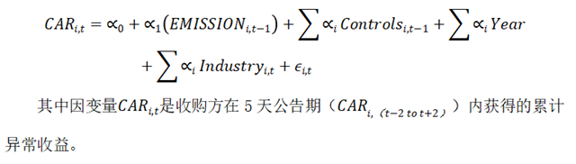 具體地,作者主要提出以下幾個問題:(1)碳風(fēng)險對并購決策是否重要,尤其是跨境目標的選擇?(2a)收購方的碳風(fēng)險是否與收購公告的市場反應(yīng)有關(guān)?(2b)排放對收購公告回報的影響是否因公司的 CSR 聲譽而減弱或增強?