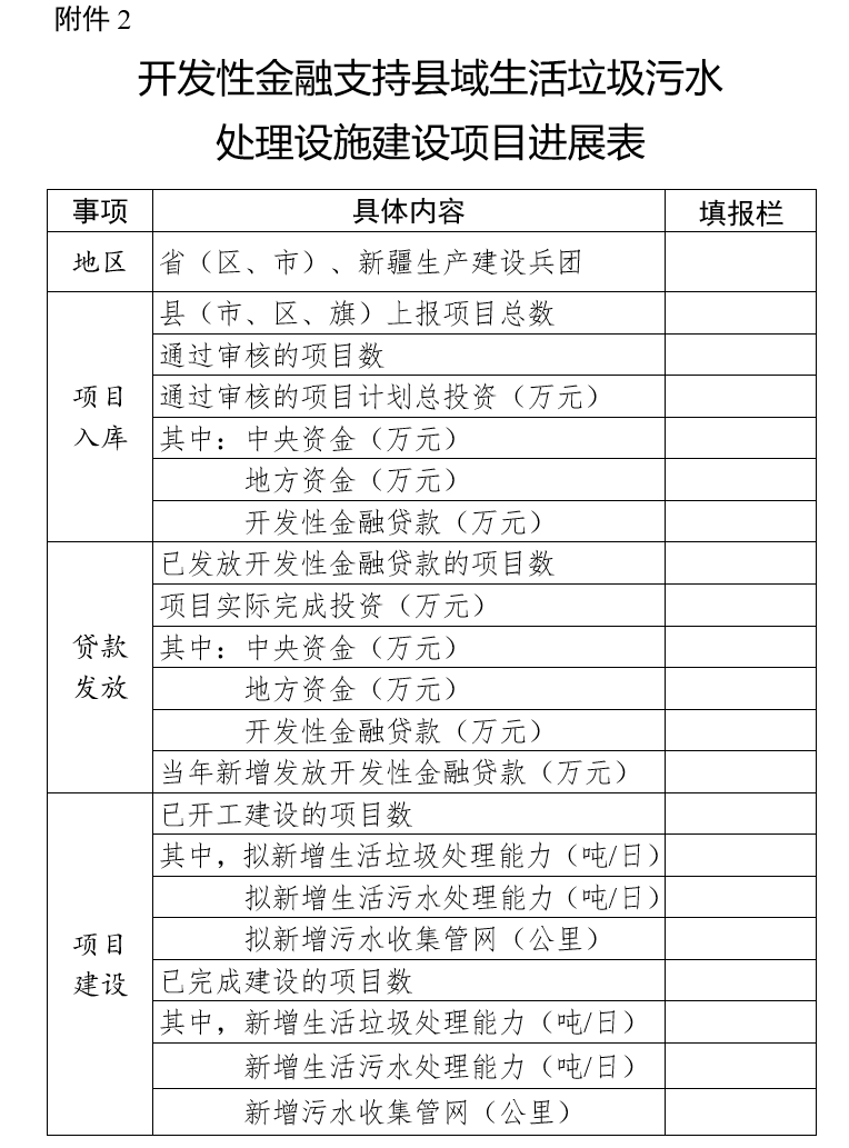 住房和城鄉(xiāng)建設部、國家開發(fā)銀行建立工作協(xié)調(diào)機制,共同開展縣域生活垃圾污水處理設施建設相關研究,優(yōu)先選取積極性高、有條件的地區(qū)開展試點工作,探索市場化、可持續(xù)的項目包裝和融資支持模式,共同培育孵化大型專業(yè)化的建設運營主體。省級住房和城鄉(xiāng)建設部門、國家開發(fā)銀行?。▍^(qū)、市)分行要建立工作協(xié)調(diào)機制,及時共享開發(fā)性金融支持縣域生活垃圾污水處理設施建設項目信息及調(diào)度情況,協(xié)調(diào)解決項目融資、建設中存在的問題和困難;每年12月底前將開發(fā)性金融支持縣域生活垃圾污水處理設施建設項目進展表(附件2)分別報住房和城鄉(xiāng)建設部、國家開發(fā)銀行。