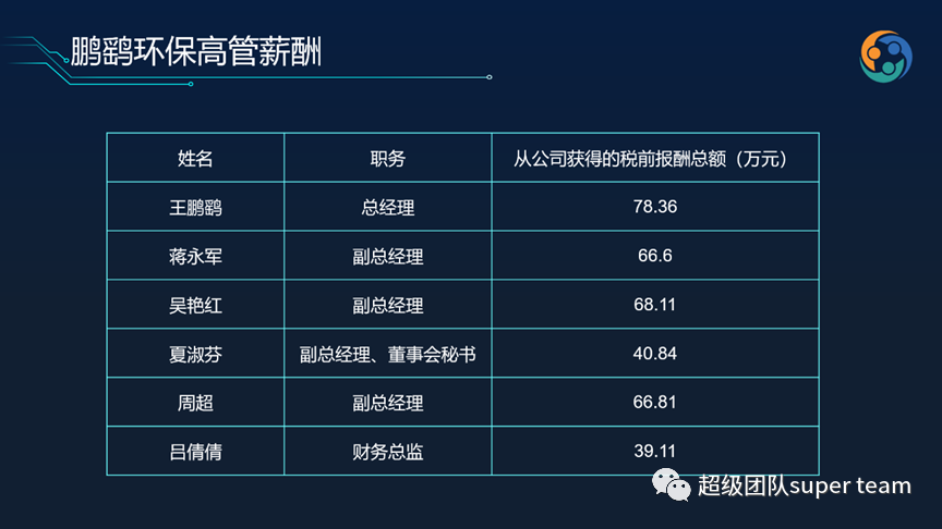 鵬鷂環(huán)保一直強(qiáng)調(diào)的是以人為本, 從鵬鷂環(huán)保的高管薪酬來看,如果鵬鷂把自己定義為一個(gè)區(qū)域型企業(yè),鵬鷂的高管薪酬絕對(duì)不算低,絕對(duì)給出了對(duì)高管人才的重視。而且這僅為上市公司公開數(shù)據(jù)。