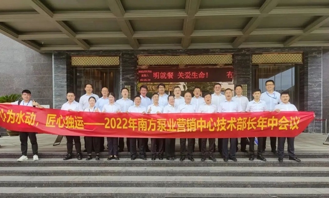 為加強(qiáng)事業(yè)部技術(shù)支持人員與銷售公司技術(shù)人員的溝通與聯(lián)系,提升銷售公司整體技術(shù)能力,南方泵業(yè)于2022年7月7日至9日開展“心為水動(dòng),匠心獨(dú)運(yùn)”為主題的技術(shù)部長級(jí)年中會(huì)議。本次會(huì)議由大客戶綜合管理部部長陳劍鋒組織召開,各級(jí)銷售公司技術(shù)部長參會(huì),并邀請(qǐng)南方泵業(yè)國內(nèi)營銷中心總監(jiān)馬燕紅女士蒞臨會(huì)議指導(dǎo)。