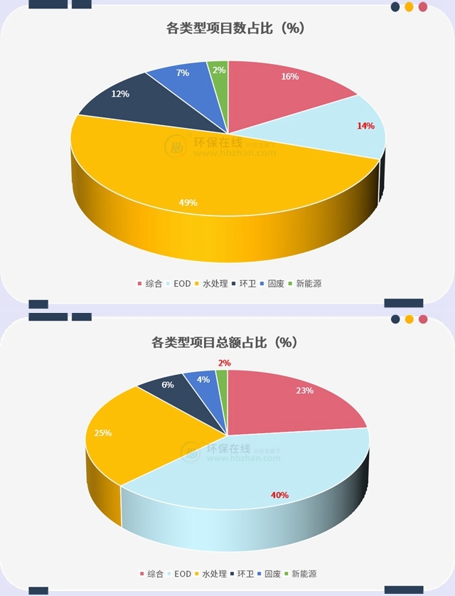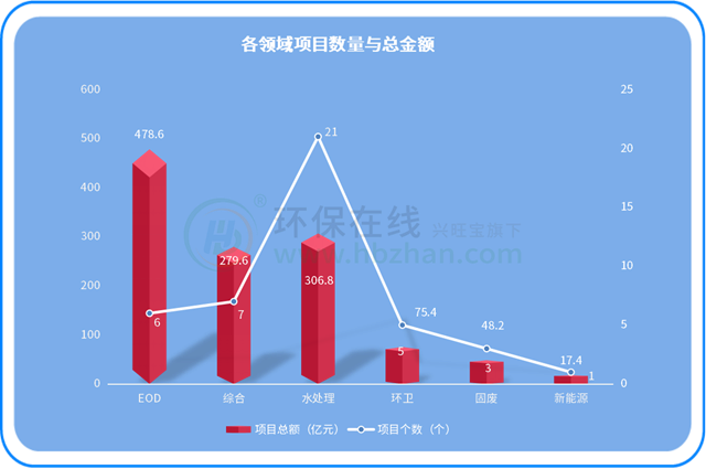 圖中也可以看出,水處理項目仍然是最多的類別,不過EOD項目以及生態(tài)環(huán)境綜合項目雖然數(shù)量少,但項目金額相當可觀。