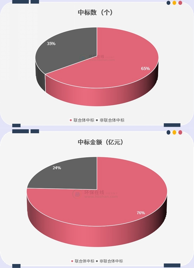另一個很明顯的特點是,這些10億級環(huán)保項目的中標方多以聯(lián)合體方式出現(xiàn),“設(shè)計+勘查+建造+運營”系列任意組合,地方包攬大標也是常規(guī)操作。并且,國資央企“當?shù)?rdquo;可謂相當明顯了。