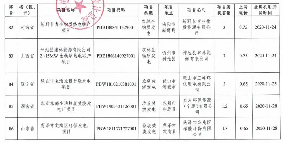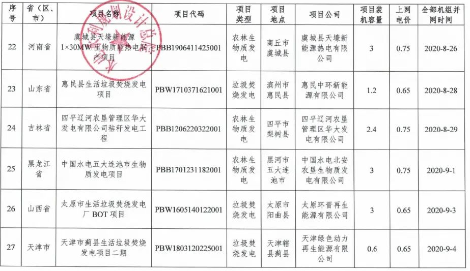 根據(jù)《國家發(fā)展改革委 財政部 國家能源局關(guān)于印發(fā)〈2021年生物質(zhì)發(fā)電項(xiàng)目建設(shè)工作方案〉的通知》(發(fā)改能源〔2021〕1190號)、《國家可再生能源信息管理中心關(guān)于反饋納入2021年生物質(zhì)發(fā)電中央補(bǔ)貼非競爭配置項(xiàng)目名單的函》(再生能信息函〔2022〕4號)、《國家可再生能源信息管理中心關(guān)于明確擬納入2021年生物質(zhì)發(fā)電中央補(bǔ)貼項(xiàng)目信息的復(fù)函》(再生能信息函〔2022〕8號)等文件要求,現(xiàn)將國家電網(wǎng)有限公司經(jīng)營區(qū)擬納入2021年生物質(zhì)發(fā)電中央補(bǔ)貼非競爭配置項(xiàng)目名單予以公示(詳見附件)。