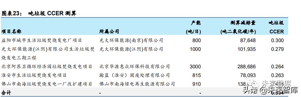CCER 項目在傳統(tǒng)項目盈利模式基礎上帶來附加收入,增厚利潤空間。垃圾焚燒發(fā)電項目 主要在以下兩個方面實現(xiàn)了碳減排:(1)焚燒替代填埋,減少了因填埋產(chǎn)生的甲烷。(2) 焚燒發(fā)電替代火力發(fā)電,生產(chǎn)相同電量下的碳排放量相對更少。選取中國自愿減排交易信 息平臺上披露減排量的垃圾焚燒項目,可以計算出每噸垃圾產(chǎn)出的 CCER 約為 0.3 噸,同 時根據(jù)復旦大學可持續(xù)發(fā)展研究中心的數(shù)據(jù),目前 CCER 的買入價格預期約為 60 元/噸, 對應每噸垃圾可帶來的增量收入約為 18 元。噸垃圾處置費取 2021 年行業(yè)平均值 87.9 元/ 噸,噸垃圾上網(wǎng)電量取 2021 年上市公司平均數(shù)據(jù)進行測算,CCER 在收入/利潤端可為項 目帶來約 6.4%/28.7%的增厚空間。在國補減少 30%情況下,CCER 在收入/利潤端仍可帶 來 1.9%/8.6%的增厚空間。