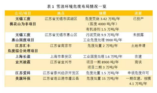 2016年11月,雪浪環(huán)境牽頭發(fā)起設(shè)立江蘇無錫雪浪金茂環(huán)保產(chǎn)業(yè)投資企業(yè)(有限合伙),基金總投資為5億元,雪浪環(huán)境通過設(shè)置企業(yè)并購基金“無錫雪浪金茂”進(jìn)一步布局危廢市場。2017年7月,無錫雪浪金茂通過股權(quán)轉(zhuǎn)讓的形式收購江蘇愛科65%的股權(quán)。2017年8月,無錫雪浪金茂通過股權(quán)轉(zhuǎn)讓的形式收購美旗環(huán)保20%的股權(quán)。美旗環(huán)保擬投資建設(shè)灌云工業(yè)廢物綜合處理中心項(xiàng)目以處理灌云縣臨港產(chǎn)業(yè)區(qū)內(nèi)危廢為主,兼顧灌云、灌南、徐圩新區(qū)、響水等地危險廢物綜合處理,總設(shè)計(jì)處理規(guī)模15萬噸/年,其中工程一期處理規(guī)模4.1萬噸/年。