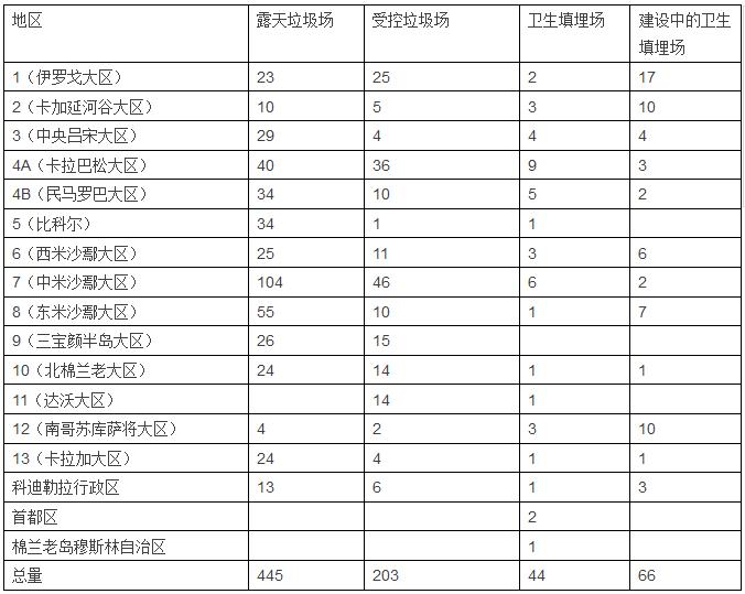 2012年時菲律賓全國垃圾場和填埋場在各大區(qū)的分布情況