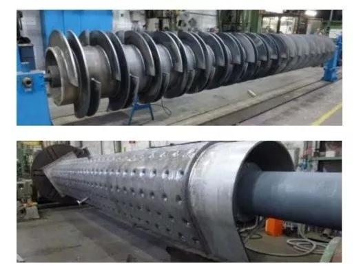 污泥干化器殼體是由鍋爐鋼加工制造的容器,熱媒通過(guò)殼體對(duì)污泥層間接加熱,內(nèi)殼根據(jù)污泥的性質(zhì)和含沙量,干化器的內(nèi)殼采用內(nèi)殼耐磨高強(qiáng)結(jié)構(gòu)鋼(Naxtra–700)的P265GH耐高溫鍋爐結(jié)構(gòu)鋼覆層或特殊高溫處理的耐磨涂層。其他與污泥接觸部分,如轉(zhuǎn)子和葉片選用不銹鋼316 L、外殼為P265GH耐高溫鍋爐結(jié)構(gòu)鋼。