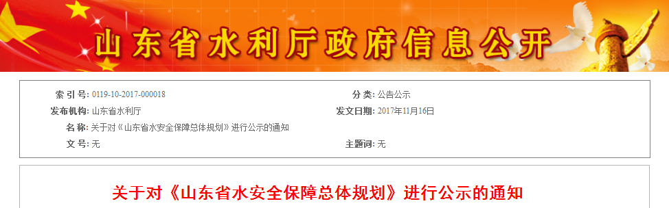 關于對《山東省水安全保障總體規(guī)劃》進行公示的通知